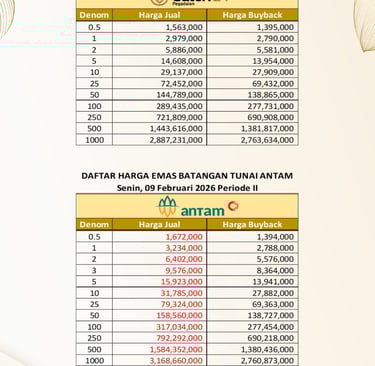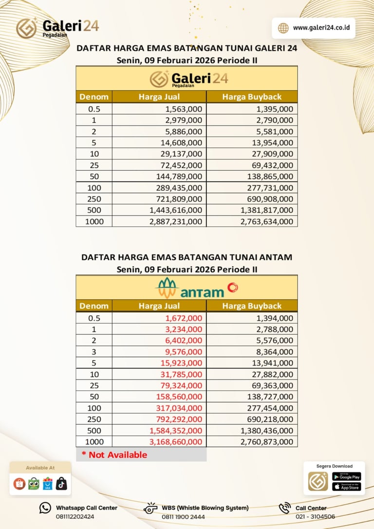 Harga Emas Per 09-02-2026 jam 10.00 WIB