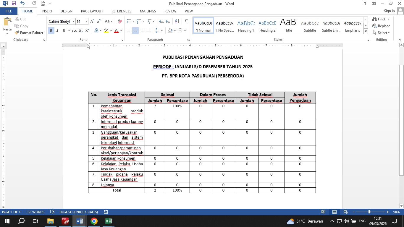 PT. BPR Kota Pasuruan (Perseroda) selalu berkomitmen dalam penanganan pengaduan nasabah. berikut rincian penanganan pengaduan yang diterima.